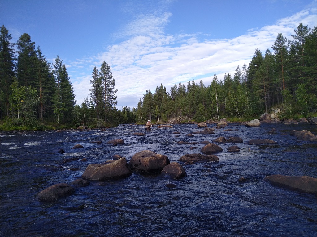 Die Landschaft ist unendlich. Schönste Flüsse und Bäche. Nur deren Rauschen ist zu hören. Die Zeit vergeht wie im Fluge. Hier herrscht kein Anfang und kein Ende. Hier ist alles im Fluss. Für Kelogs und mich ein Traum. Des Nachts heulen die Huskies; 1 Minute, dann ist wie von Zauberhand ein Schalter umgestellt worden und alle sind still.