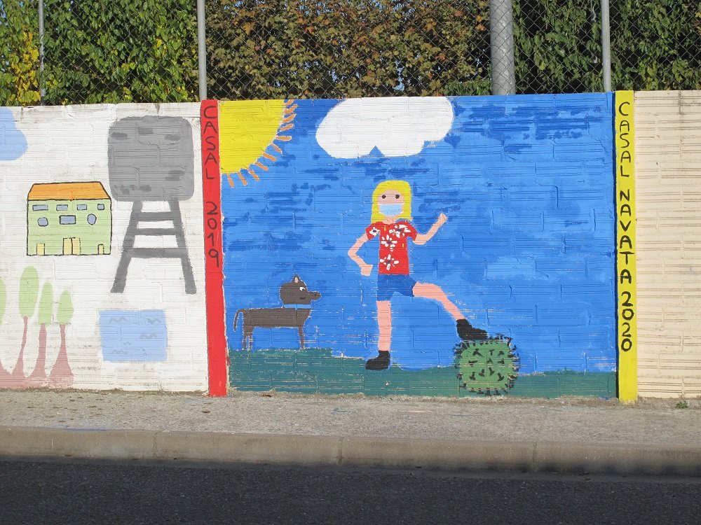 Veröffentlicht am 28. Oktober 202029. Oktober 20203 | Navata [69/1525] Das Kinderbild auf der Mauer ist aus dem Jahre 2020. Die Kinder konnten jedes Jahr ein Mauerelement bemalen.